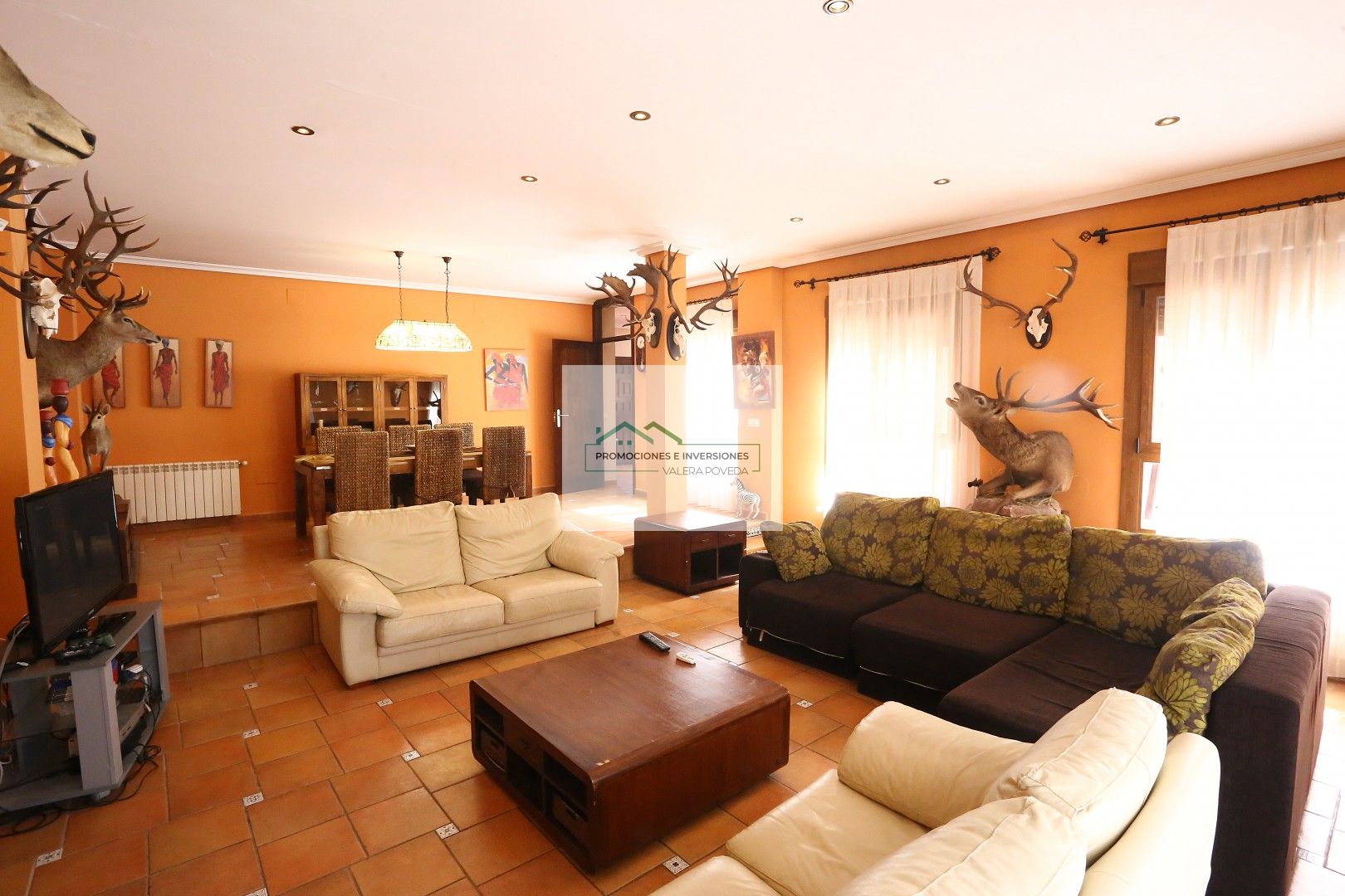 EL SALÓN COMEDOR CUENTA CON DOS ZONAS DE ESTAR DISTRIBUÍDAS EN DOS ALTURAS Y TIENE CHIMEA.
