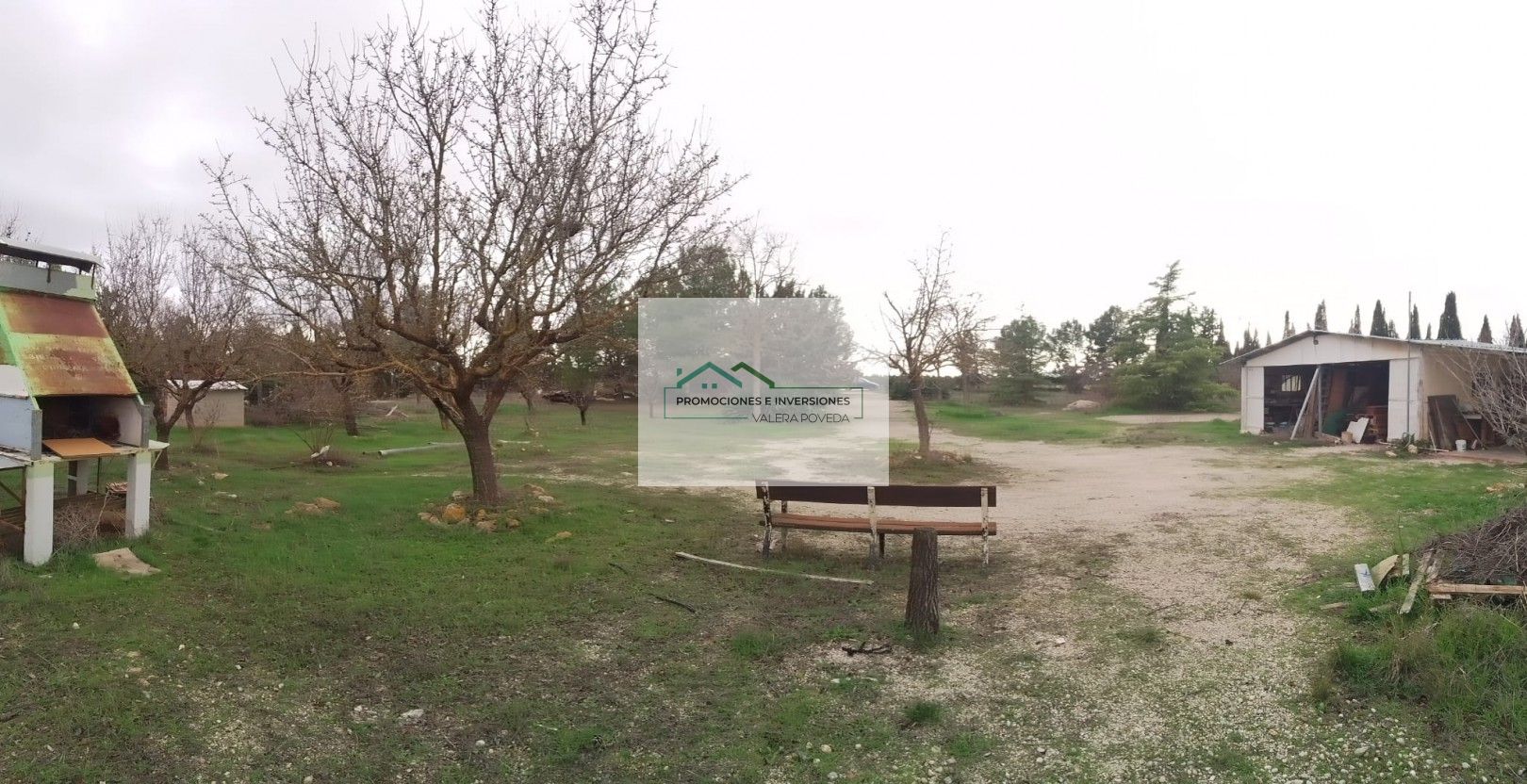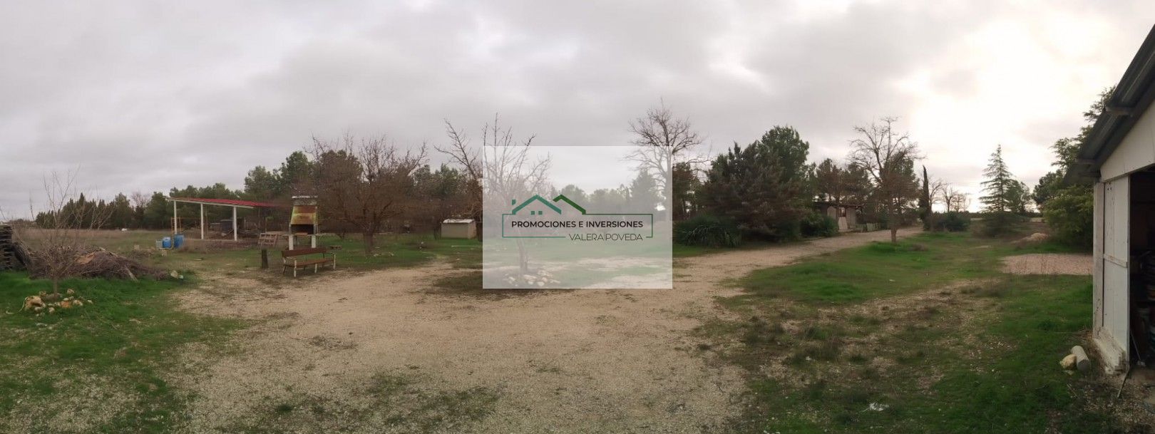 En otro sector de la parcela hay un espacio destinado a zona de ocio, perfecto para instalar una piscina, acompañado de barbacoa, baño adicional y vestuario, creando así un área ideal para reuniones familiares y eventos al aire libre.